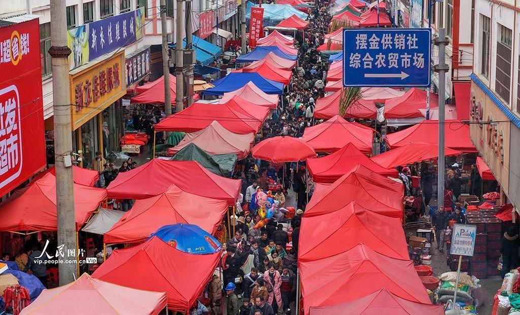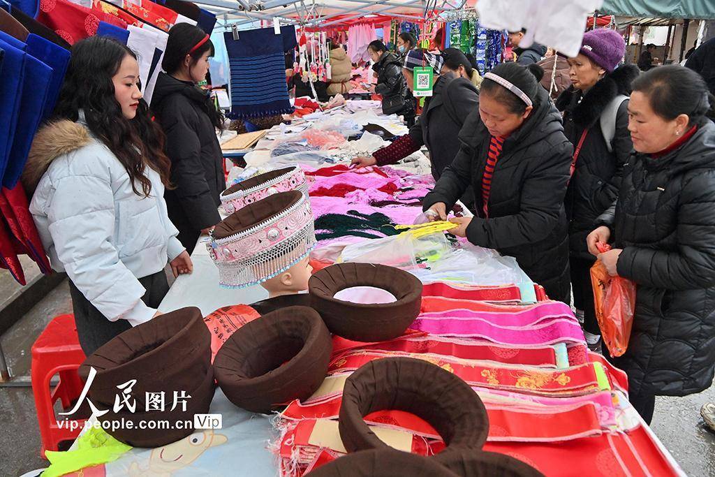 2026年2月12日,是贵州黔南布依族苗族自治州惠水县摆金镇春节前的最后一个赶场日。各色民族服饰与精美手工艺品成为独具特色、备受青睐的时尚年货,吸引众多女性顾客驻足选购。人们身着盛装喜迎新春,以绚丽多彩的民族风情,为佳节增添了别样的年味。乔啟明摄(人民图片网)