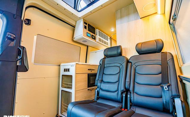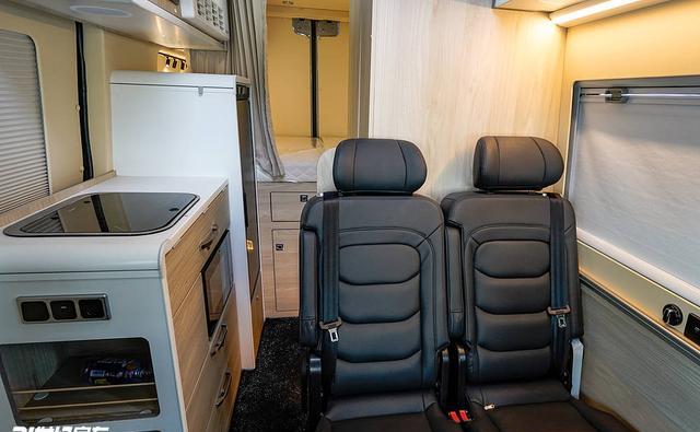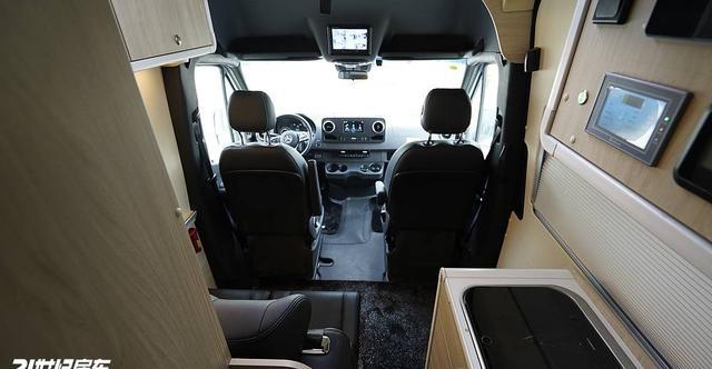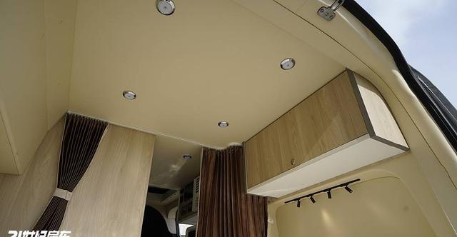 坐卧系统采用“二排双人座椅+后排横床+升顶床”的组合,日常商务出行时,二排双人座椅可作为会客区,搭配隐藏式小桌板,形成4人商务洽谈空间,座椅包覆材质细腻,支撑性充足,长途乘坐不易疲劳。