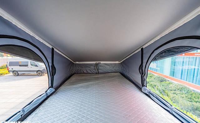 驻车露营时,后排横床与升顶床可同时展开,满足4人睡眠需求,升顶设计既拓展了垂直空间,又保证了行车时的车身高度合规,兼顾实用性与灵活性。