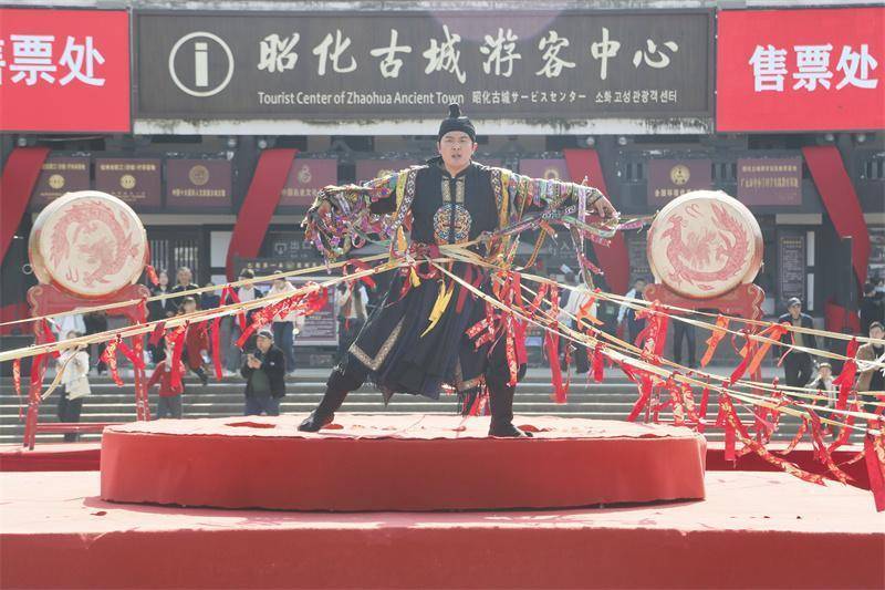 2月20日,正月初四,广元昭化古城处处洋溢着马年新春的喜庆氛围。古城游客中心,原创舞蹈《古傩献瑞》精彩上演,以非遗底蕴融合马年元素的全新表演,为八方游客带来别样的新春视觉盛宴,让千年古城的年味愈发浓郁。